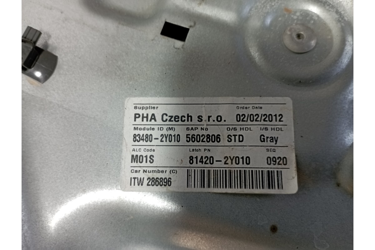 Recambio ELEVALUNAS TRASERO DERECHO 814202Y010 de Hyundai (2012) · Motor D4FD · 115CV 85KW CV · GRIS · Diesel · Bastidor TMAJU81UACJ286896 · ID 1704957