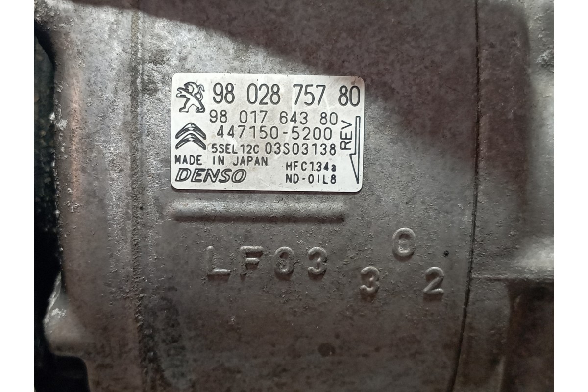 Recambio COMPRESOR AIRE ACONDICIONADO 9802875780 de Peugeot (2015) · Motor BH02 · GRIS · Diesel · Bastidor VF37JBHY6FJ674560 · ID 1712235