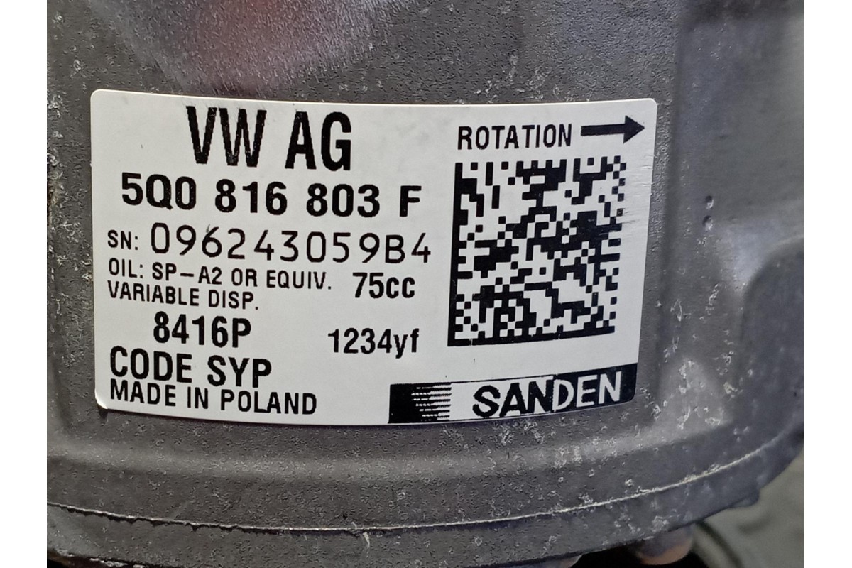 Recambio COMPRESOR AIRE ACONDICIONADO 5Q0816803F de Volkswagen (2019) · Motor DFG · 110CV CV · BLANCO · Diesel · Bastidor WVGZZZ5NZKW915028 · ID 1699474